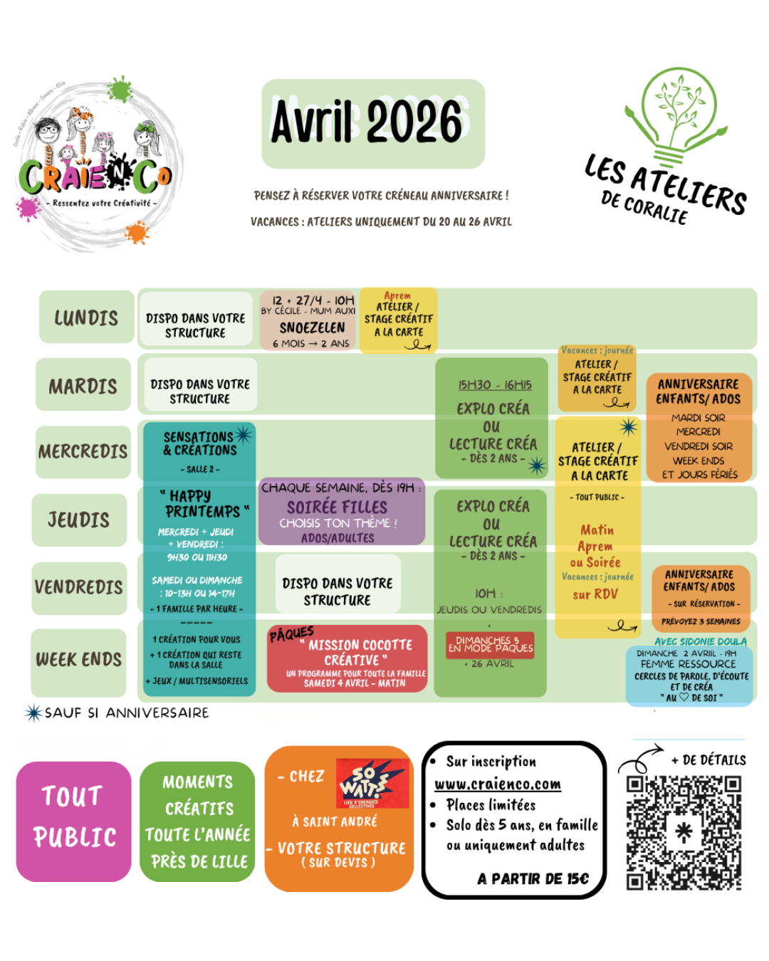 Découvrez les ateliers ouverts toute l’année, et pendant les vacances scolaires !